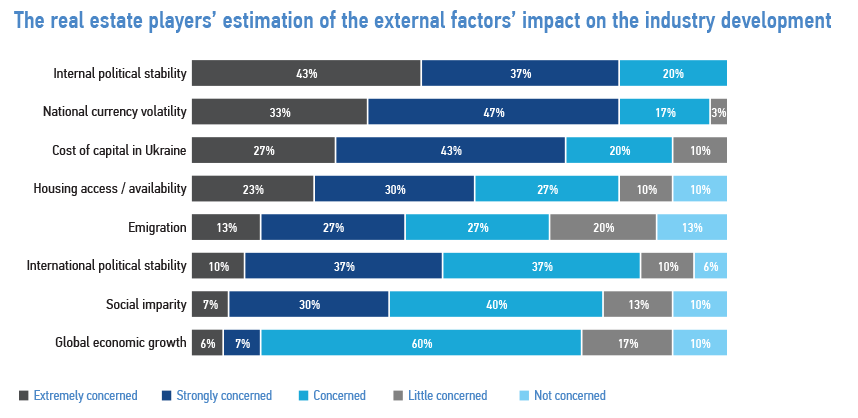 Even though, Ukrainian real estate market demonstrates a recovery comparing to the previous year, the real estate players are still extremely concerned about macroeconomic and social factors, which have significant impact on the business efficiency.