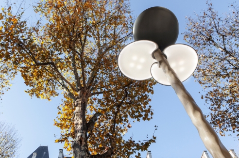 Французский дизайнер Mathieu Lehanneur представил уличные фонари, работающие от солнечной энергии, и скамейки, изготовленные в форме обычных бревен. Проект под названием Clover представляет собой лампы в форме лепестков установленные в верхней части деревянных стеблей. Под фонарем располагается лавочка и пара сидений для пешеходов, выполненные из такого же материала (несколько видов древесины) и подобной волнообразной формы. Прохожие также могут самостоятельно зарядить свои телефоны через специальное отверстие в солбе фонаря http://goo.gl/qxeGwe