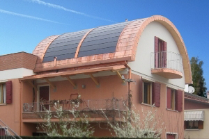 Фотогальваническая черепица позволяет трансформировать солнечную энергию в электроэнергию, используя так называемый «фотоэлектрический эффект». Применяется она при разных уклонах, в т.ч. на плоской кровле и на фасадах, может интегрироваться как в черепицу с металлическим покрытием, так и в черепицу с базальтовым гранулятом: http://goo.gl/U2hb30