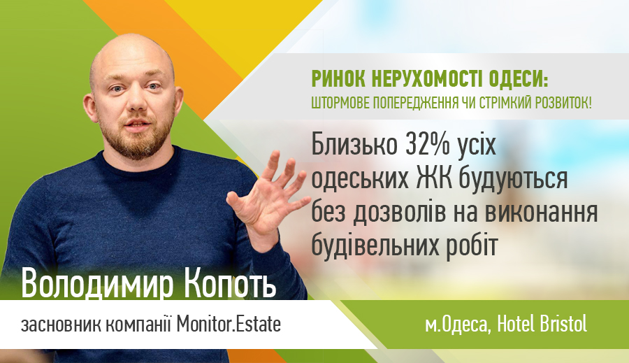 Про це на Форумі «Ринок нерухомості Одеси: штормове попередження чи стрімкий розвиток», повідомив Володимир Копоть, засновник компанії Monitor.Estate, що проводить юридичний on-line-аудит первинного ринку житла в Україні.