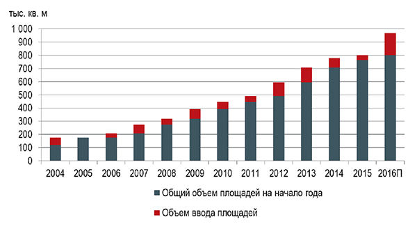 Варто відзначити, що в 1-му кварталі 2016 року було закритий ТЦ «Альта Центр» (16 тис. Кв. М). В результаті обсяг ринку якісних торгових центрів Києва знизився до 801 тис. Кв. м, а забезпеченість населення торговими площами - до 275 кв. м на 1 тис. жителів.