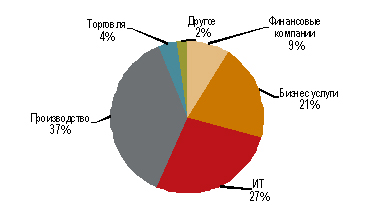В структуре спроса превалируют производственные компании (37% от спроса 3-го квартала), игроки IT-сектора (27%) и сферы бизнес-услуг (21%).