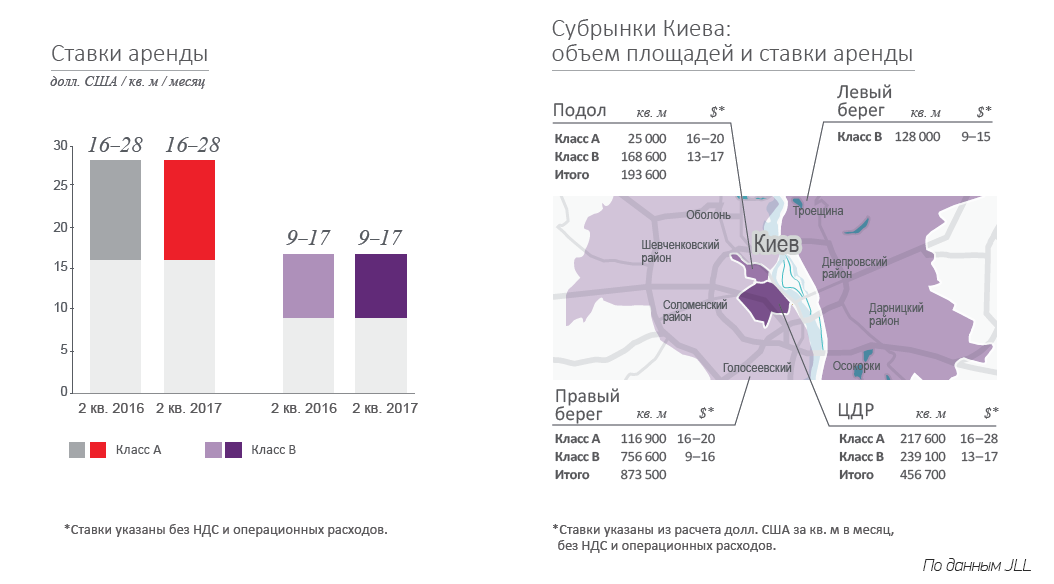 Максимальная базовая ставка аренды, по данным JLL, не изменилась и составляет 28 долл. за кв. м в месяц (без учета НДС и эксплуатационных расходов).
