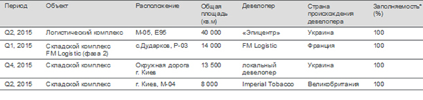 В третьем квартале 2015 года данная тенденция изменилась в положительную сторону, и в четвертом квартале данный показатель достиг 64 100 кв.м (GLA). Кумулятивный годовой показатель чистого поглощения в сегменте логистической и складской недвижимости в Киеве и пригороде в 2015 году составил около 21 000 кв.м (GLA).