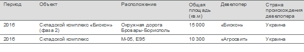 Таблица 2. Основные объекты складской недвижимости, запланированные к вводу в эксплуатацию в Киеве и пригороде в 2016 году